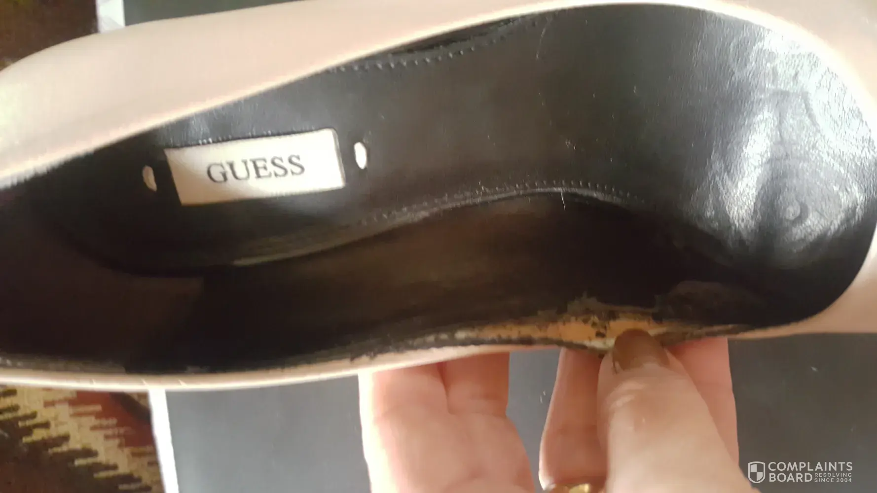 I purchased my guess shoe from citycenter shop Alexandria Egypt and I wore it only 3 times.. to my surprise this happened on my 3rd time all torn and marked black color all over my foot ..