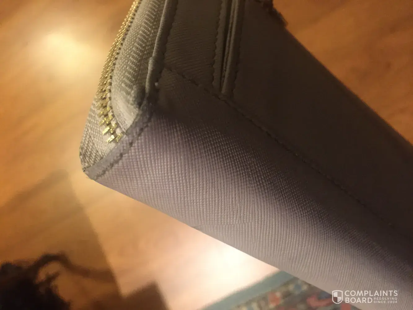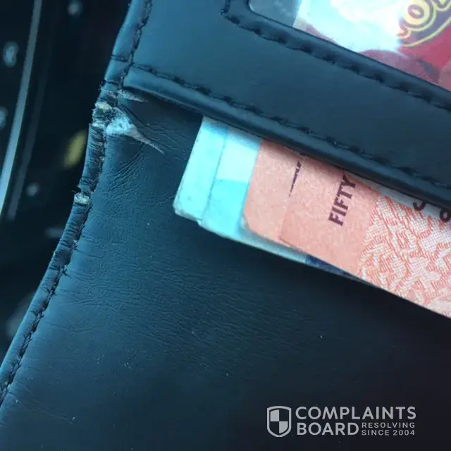 The handles are peeling, the colour is rubbing off and the bag is just awful. The wallet is splitting.