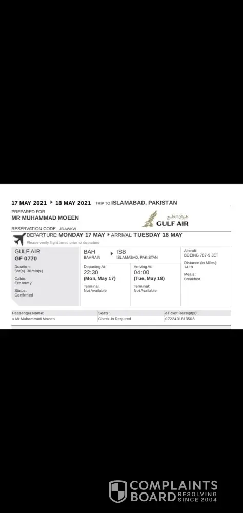Please investigate the issue and acknowledgment from gulf air will be appreciated.