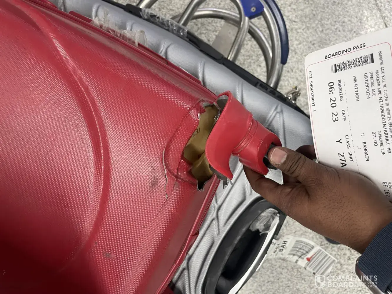 I have traveled from hyd to bahrain to jeddah and once I received my baggage the baggage is damaged and i have informed to the baggage service at the airport