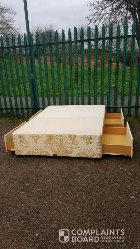 I bought a double bed base for £35 +20 for delivery. Bert came when very dark outside. We helped him in with it into a narrow hall. Light was poor. I did notice a rip onside & corner, not seen on photo. Not till he'd beed paid and put in b/room did we notice it was not the bed I'd seen in photo. It was a different bed with lots of rips. Looking like it had come out of a skip. I texted and asked for money back and I would report him. Not heard back Vanessa