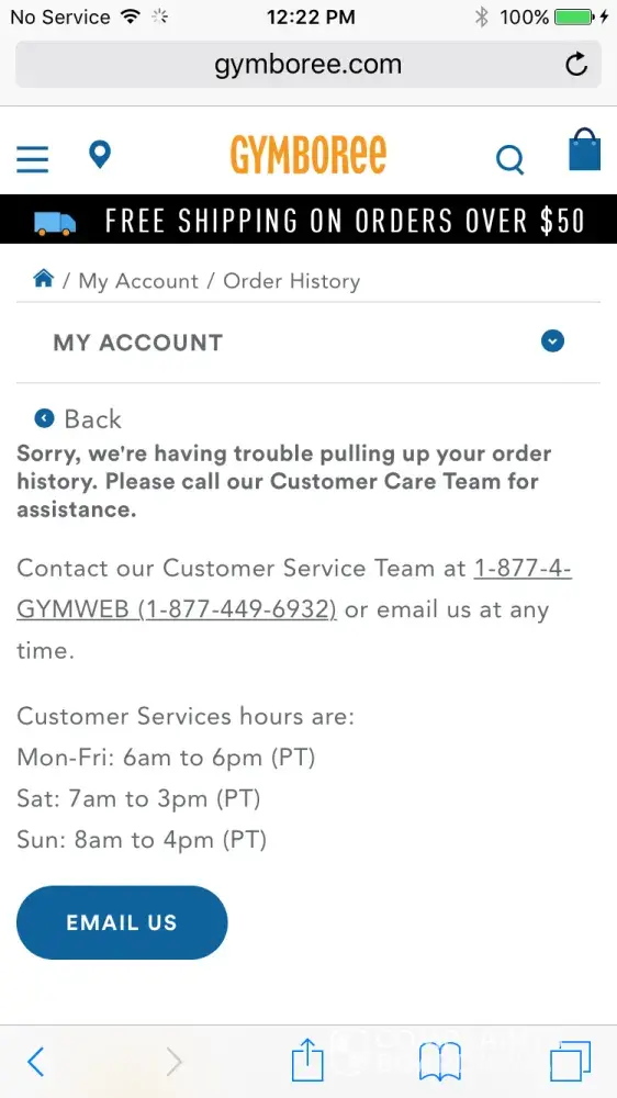 Reluctantly, I hang up and go to Gymboree.com to my account. Low and behold there is no order # of that sort there, no sign of the order I placed plus my cart has been wiped out. I try to re-enter items and about half are no longer available in the sizes I needed.