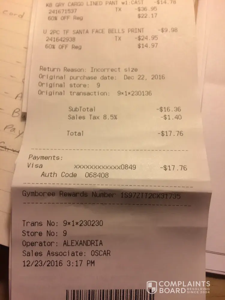 I’m waiting for the credit back and of course gymboree should also cover any fees coming from the credit card.