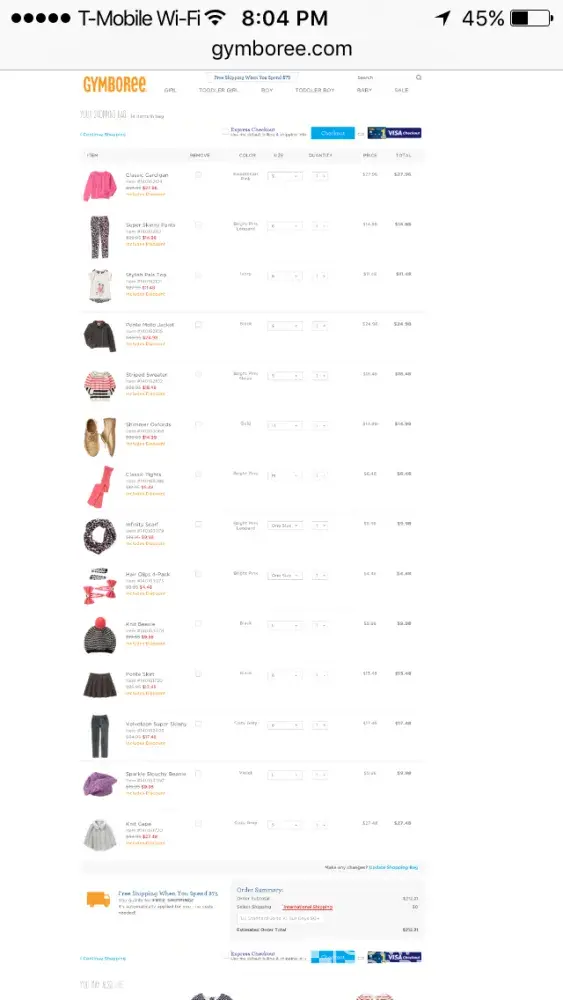 I bought from the website www.gymboree.com. It was possible to do different clothes for girls and boys. I placed the order and received it couple of days ago. But I was disappointed, because some clothes have yellow spots and the t-shirts weren’t fresh. I returned the whole order to the seller, but he still hasn’t contacted me and offered any solutions. I won’t advise this website and I won’t buy from them again.