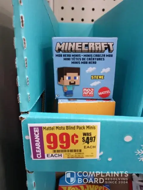To whom it may concern, My daughter found some mini-Minecraft figures in a box that was labeled on sale for.99 cents from original price, so she grabbed 3. when we paid at the cash register, the price was $3.98. We told the cashier, and she went to check. She told us it was in the wrong place, and she could only give me 1 for the clearance price. That i...
