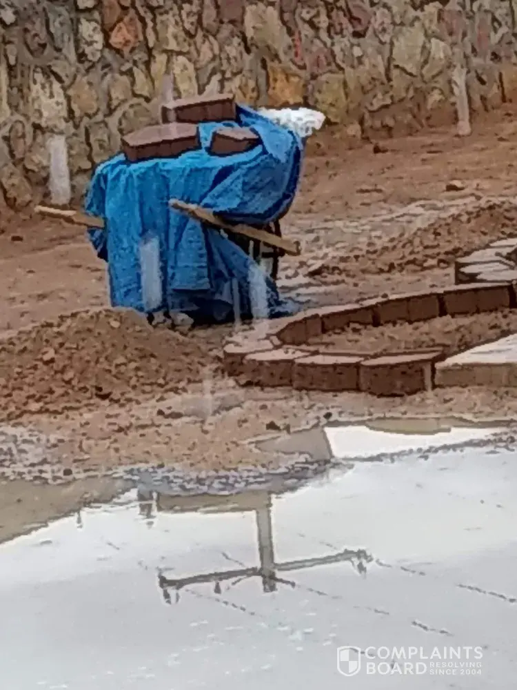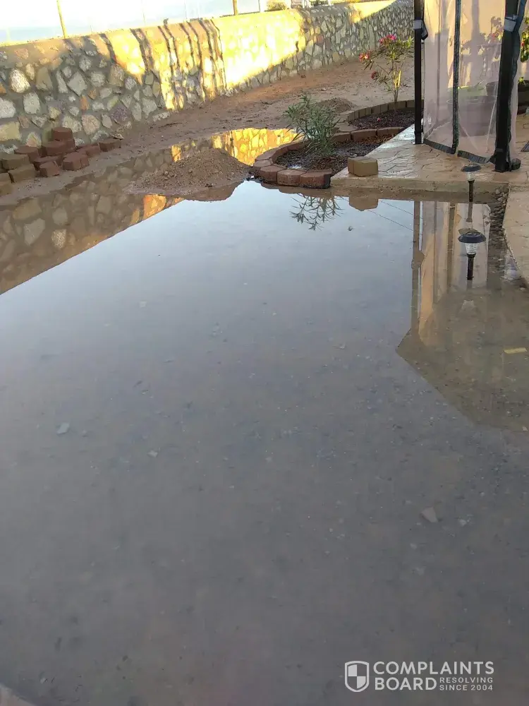 this is how they left my sons home who is a disable Veteran this isn't right he has spend over 8, 000 (he took out a loan) to try to fix his front yard because trash pick up won't come into our property...he couldn't even walk out his back door..& when it rain well let the pic tell the rest of the story