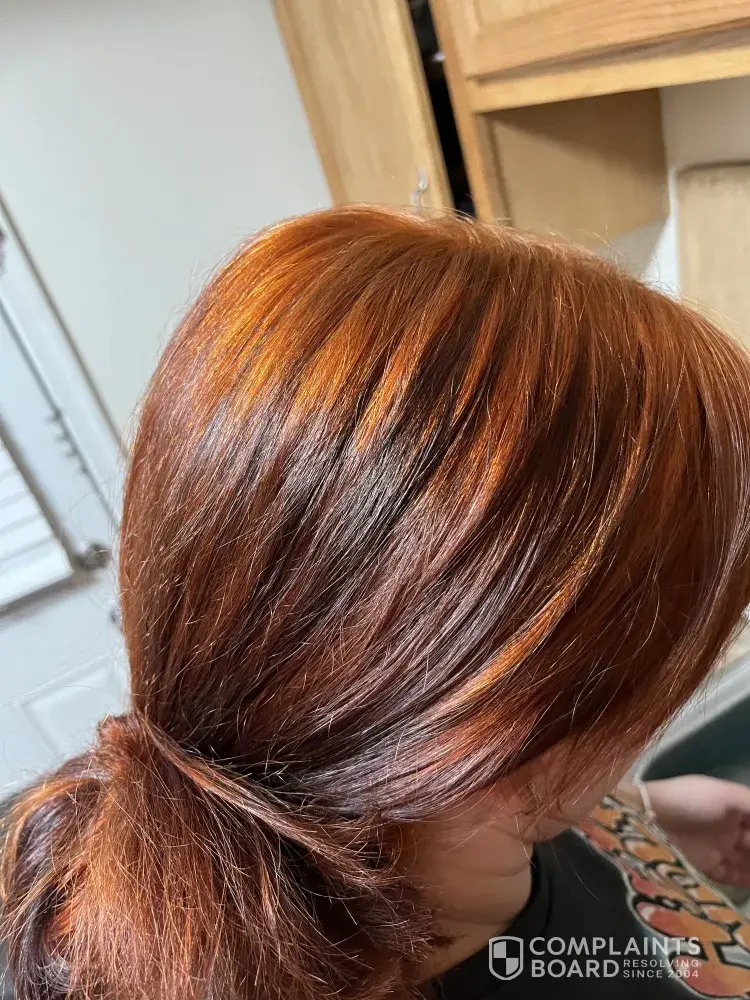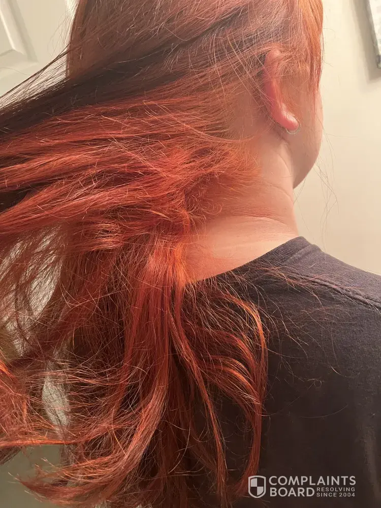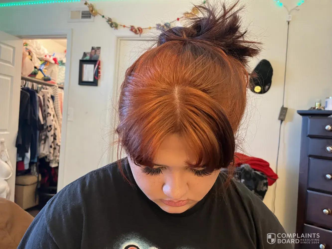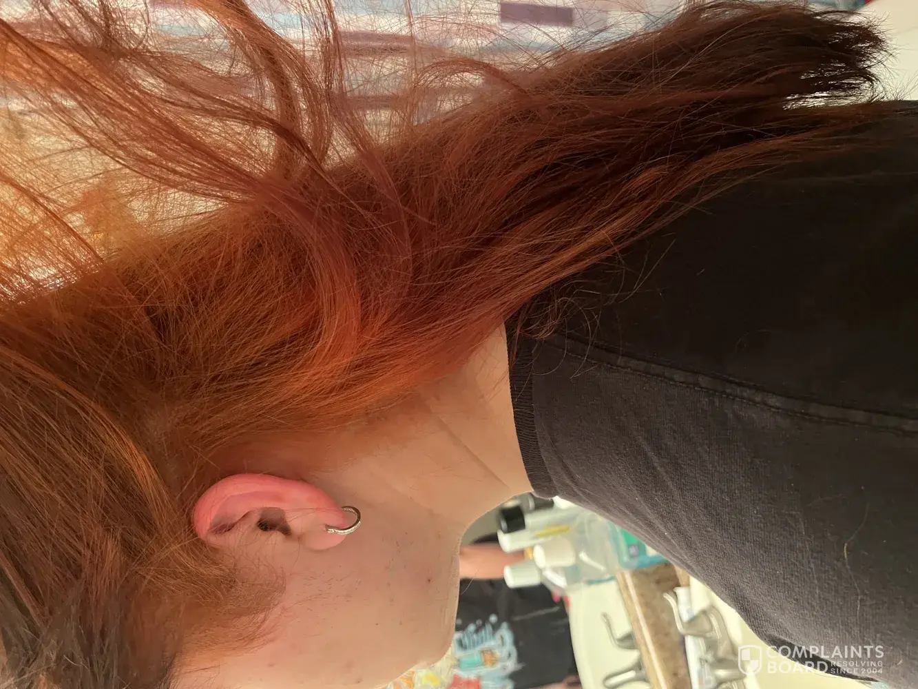 I am absolutely devastated at what has happened to my daughters' hair for her 16th birthday. My daughter asked for a beautiful dark red hair color and the woman made bleach spots and neon orange patches along with black streaks all over her head. She ruined her shirt with hair color. She splashed it all over her, she had color on her clothes and arms and face and then she asked for curtain bangs and the woman cut her bangs way up above her eyebrows. Nothing resembling curtain bangs! Her hair is ruined and she can not even go back to school until it's fixed because she is so embarrassed. She has cried for 2 days since she left that salon. Horrible horrible horrible