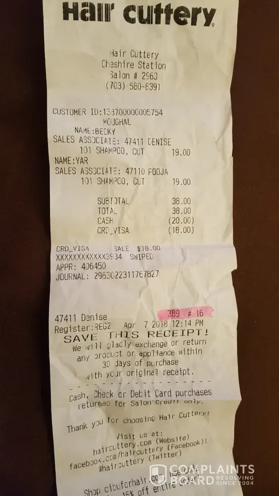 I feel as though I was over charged when I took my daughter to the hair cuttery. She's only 9 yrs. Old with very soft thin hair. They told me because of hee texture they had to charge more. She does not have a thick texture of hair it's a little curly but soft and I was told by the hair stylist that her hair texture was different. But before the stylist started she told me her hair was soft and never discussed with me the price difference. This was my first time here with my daughter the stylist was very nice took care of my daughter hair but I felt as though there should not have been an additional charge .
