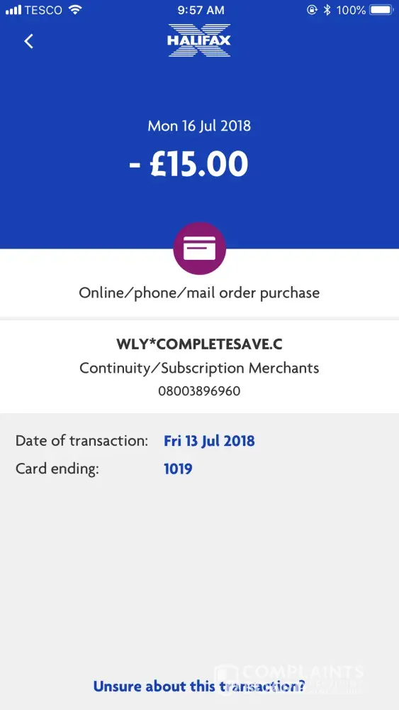 5/01/2016. Complatesave.co.uk they take money from my account without my confirmation. I want my money back. Thanks