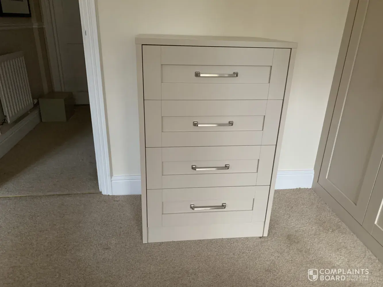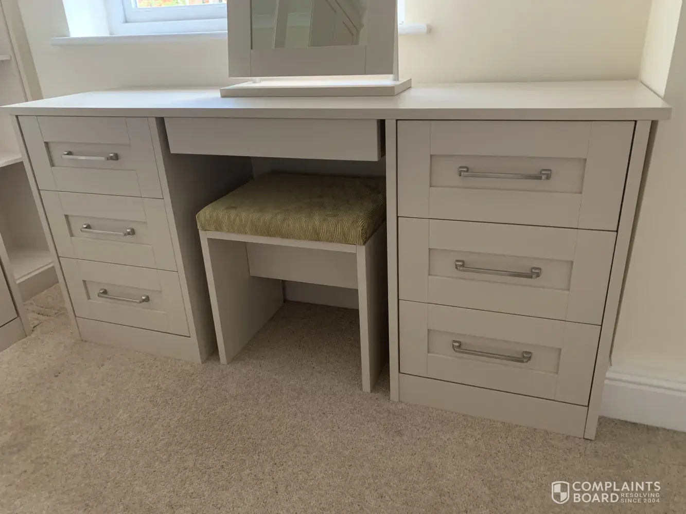 I spent a lot of money for a fitted bedroom. The chest of drawers is too small and the dressing table is too big and has been built over the only electrical power points in the room
