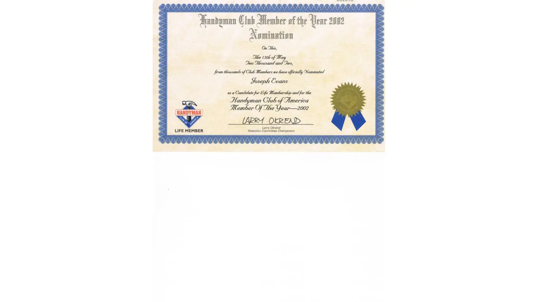 I have been a Master Life Member of the Handyman Club of America Since 02/2012.