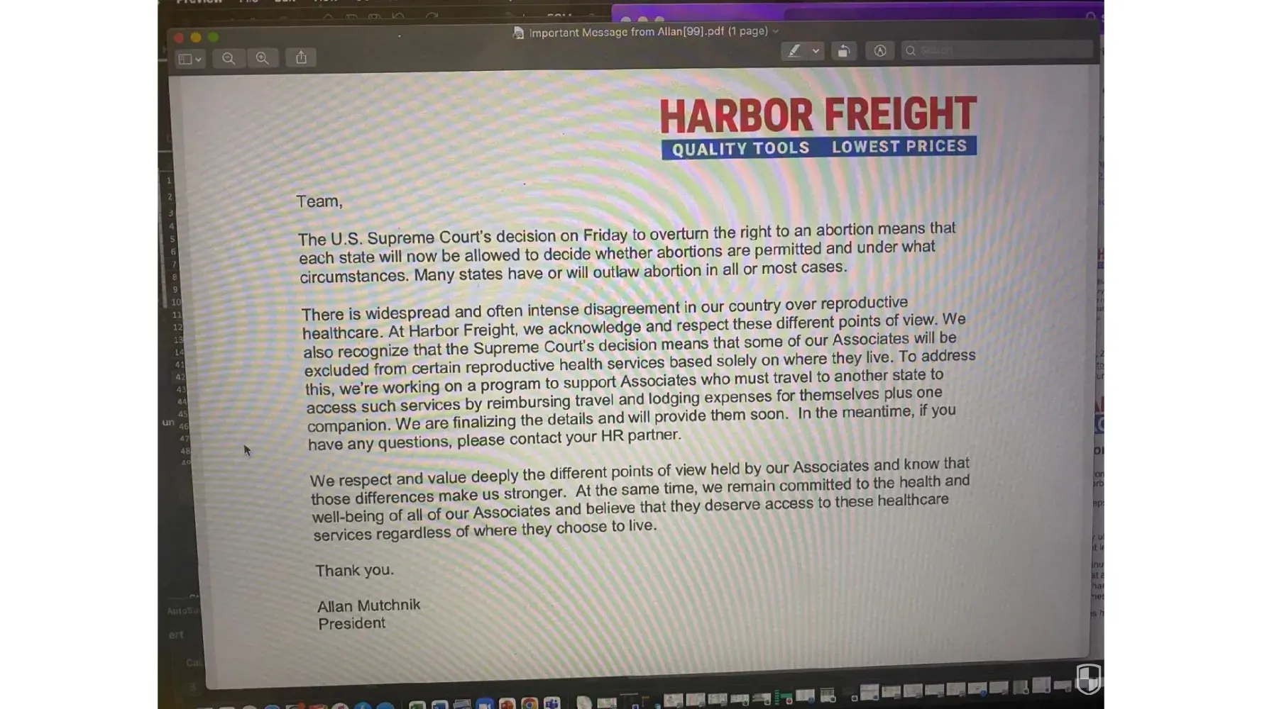 An employee of yours has sent me inter office memorandums about your companies employee abortion policy. I would like to speak to someone regarding this unacceptable behavior .It is some sort of twisted, sick retribution against me that needs to be addressed. I filed an official whistleblowers complaint against the company she operates (Four Generations) although she is an employee of Harbor Freight.
