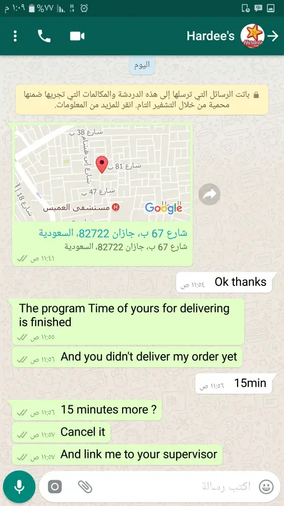 I would like to complain to you about your worst branch in jazan city that don't care about the quality that your company follows, they have the worst delivery ever. They don't care about the delivering time and it's quality and the customer satisfaction. I'm a captain and i follow a very punctual standardization in every day in my work and whenever i order from this branch they never stick to the time and i ended up canceling the order. They have no good supervisor to keep an eye on them and apply the quality standards of your and never give you the complains of the customersand their voice to you never reach . So i wish my voice reach you and correct the mistakes in this branch of jazan who are never punctual . For an example, today in the morning 11:00 am while there no jam on order and delivering i made an order and the estimated delivery time to reach was 30 minutes but 45 minutes passed and nothing reach but a call from the delivering guy say that he needs more time because they didn't make the order yet ! and i still have his messages on what's up app !
