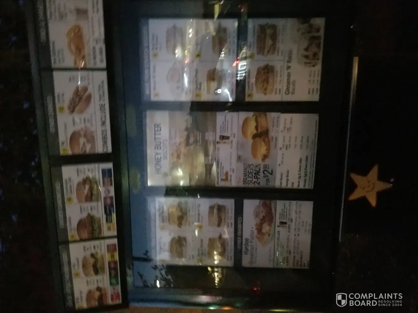 I just moved to the Conyers/Covington Georgia area from Dunwoody Georgia. I was appalled and horrified to find the order board being completely dark as well as the rest of the restaurant when the restaurant was open. Upon ordering I made the cashier aware that the Board and the area was completely dark and I couldn't see anything on the menu and upon me using the light on my phone the order board had lunch/dinner items and not breakfast items. I was then told by the cashier that it was to dark and dangerous for them to cut the lights on the order board. There is a Burger King and and Dunkin Doughnuts right next door and them seem to have their lights on. The Hardees I would go to in Sandy Springs off Mt. Veron/ Ralph David Abernathy always had their lights on. I have gone to this drive thru 3 straight weeks for breakfast and they refuse to cut the lights on. This is a safety issue for all of the patrons attempting to order breakfast at this location. I want a district manager to call me to discuss further at [protected]. I am looking at calling the Board of Health as well as filing a complaint with the BBB and Consumer Affairs if this matter isn't addressed immediately.