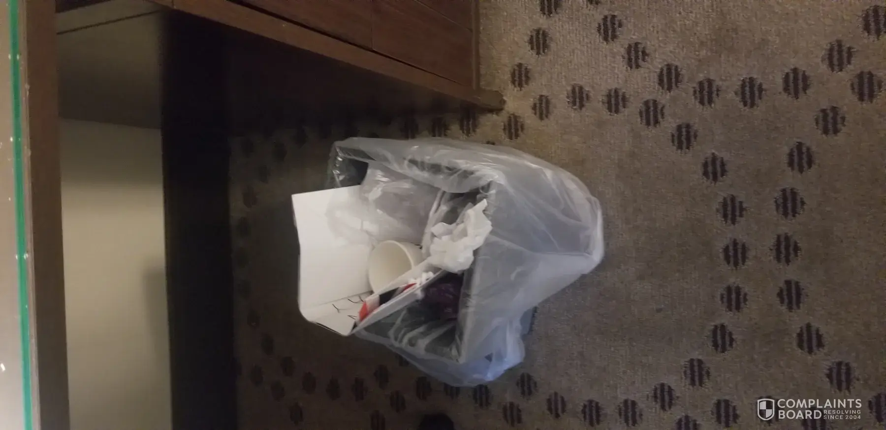 4. Sunday night, when we got back to the room, nothing had been cleaned up. garbage was not emptied, bed was not made and no clean towels. A set of pillows were hanging from the outside door, as we had called earlier that day for additional pillows. We had to call for towels. with no expected time of arrival. It was 10 pm when they showed up.