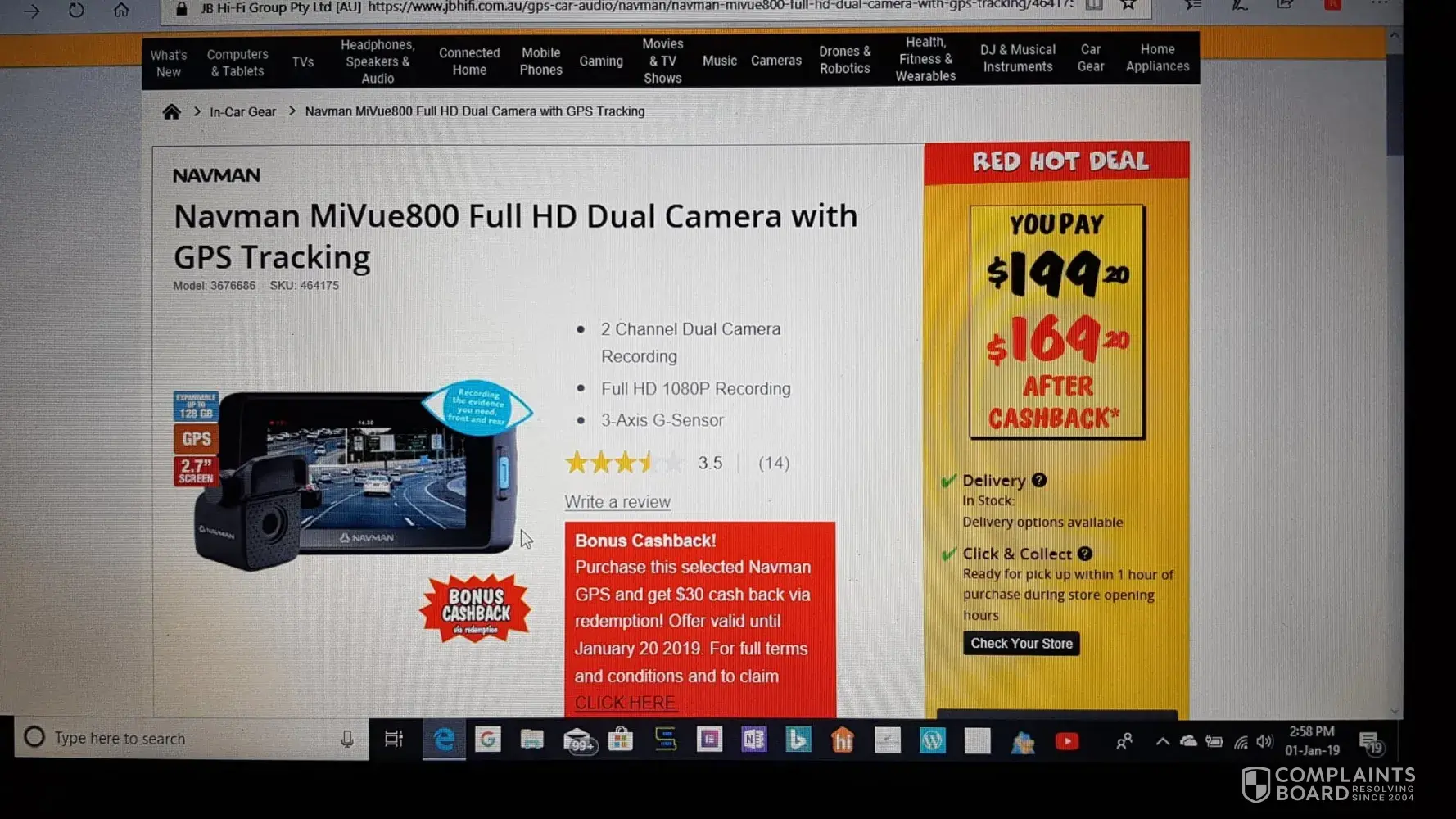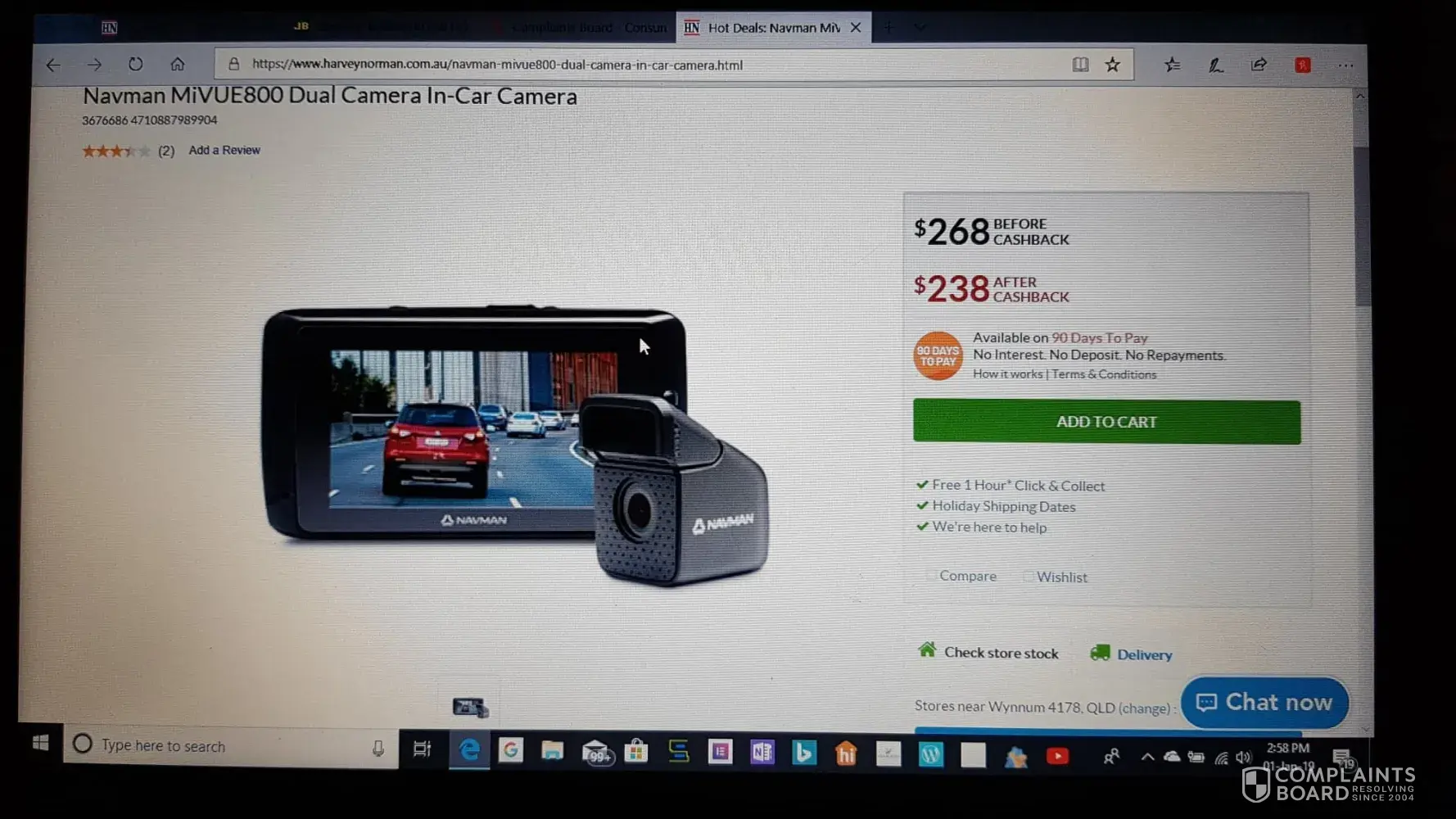 My daughter and I both bought this dash cam from you online as this could only be bought online. When ordering this dash cam my daughter never had a problem and they were only to happy to help. When I ordered mine they were not. I was left in total of 3 hours waiting on the phone + never receiving call back as I got sick of waiting for so long. They did say that they were going to reimburse me the delivery and I am still waiting on that. As both cameras had faults we chose to deal with the faults one at a time. The Dash Cam that my daughter bought from you had a issue with the socket for the back camera. Because of the treatment we received from you we ended up taking the dash cam to the closest store, that being Capalaba. They handled our problem promptly and politely. As the Dash Cam that I bought had a whiteout problem with the main camera we ended up ringing you to see what could be done. You told my husband that because it was bought online that we had to go to the closest Harvey Norman Store which again was Capalaba, to either get a refund or replace it with another Dash Cam as my original Dash Cam could not be bought at the store. We were told that we were not able to get a refund and that we would have to buy one at a dearer price as I wanted one with a back camera. Which ment that I would have to pay the difference of $50. I told them that JB Hifi has the same camera for $199.20 after cash back making it $169.20. They didn't care. Harvy Norman has the dash cam for dearer as the special has now finished and JB Hifi special is finishing today.