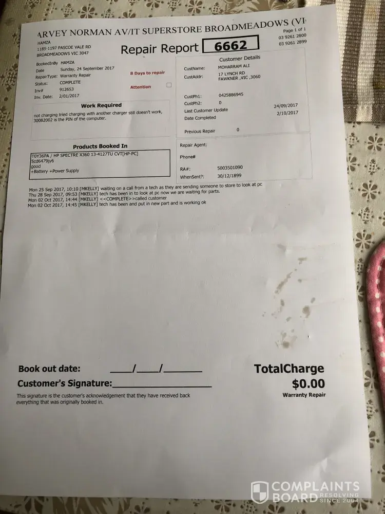 I purchased a HP spectre laptop 2Jan 17 and 24 Sep 17 it stopped working not taking charge at all . I bought to Broadmeadows store and asked for replacement but instead they repaired parts and was saying it would be fine and was told if it happens again to bring it back. The same problem happened again last week and I came today but I was told by the person in charge that they can't do anything now since it is now outside warranty. I spent $2000 for this laptop and my daughter has exams. I need speedy replacement of my laptop.