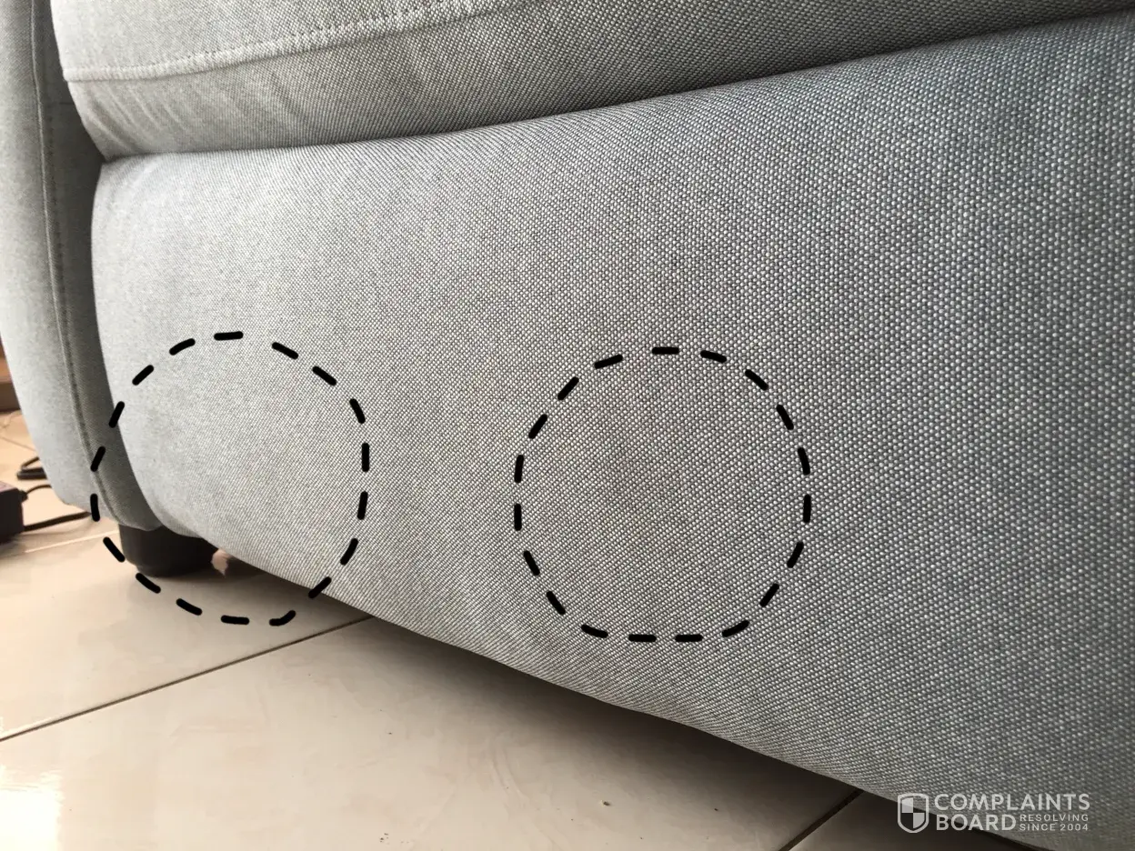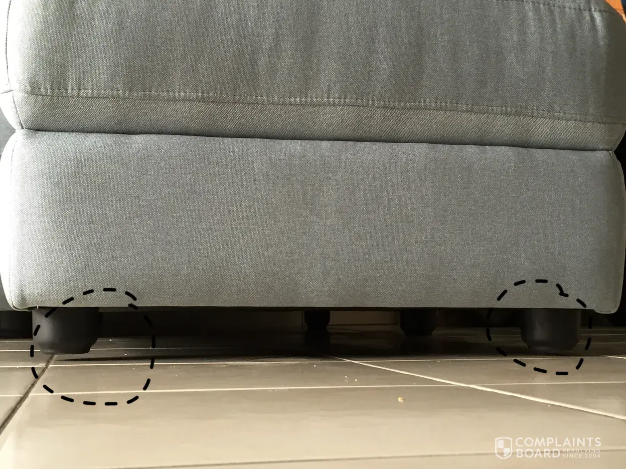 Another flaw I found utterly ridiculous is that the sofa legs are uneven. The legs don't meet the floor! (Please see attached pictures)
