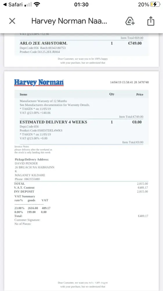 We are so upset by the product, the service and the lack of customer service from Harvey Norman. This has upset us SO much that we do not want to ever deal with them again. Our friends and family are also shocked at the inferior product and said they won't be buying furniture either.