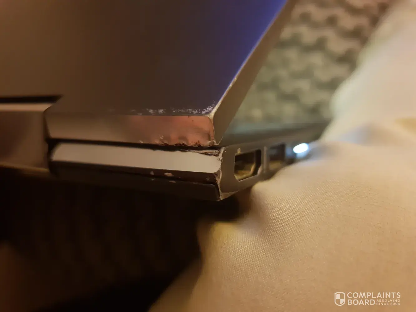 Three days ago I collected my laptop from your Harvey Norman after it being away for repairs through product care for five weeks. I didn't use the device until the following day, and when I did look it over I a noticed significant recent marks and scratches that were not there previous to being sent for repairs. The laptop looks as though it has been dropped onto the charger connection, which is now also bent. There is also a dent at the front of the unit. A peice of the mental casing which I had previously bent has been "fixed", now its rough and sharp, and very unacceptably repaired.