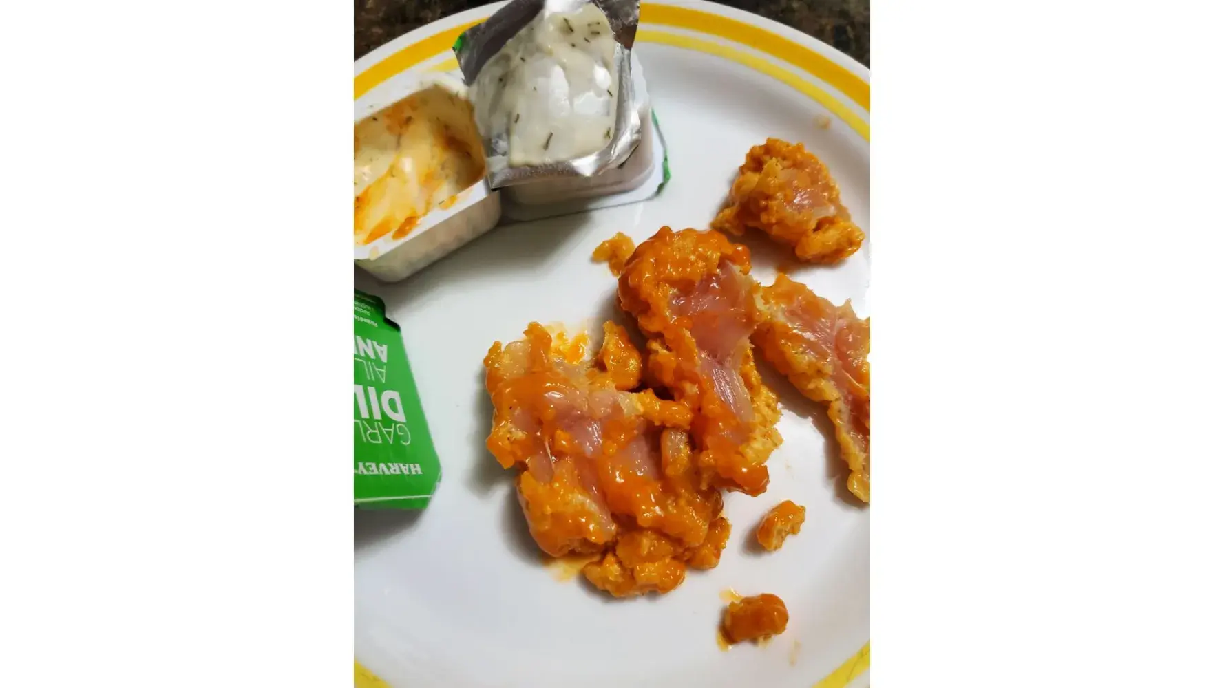 Last night, I ordered a large order. 6 chicken burgers, 12 piece Buffalo chicken nuggets, 3 egg sandwiches, and a breakfast wrap. This was meant for my family for a couple days of dinners. We ate the egg meals no problem, and I saved my 12 piece Buffalo chicken nuggets for the morning/lunch. (I am night shift) I took my chicken out to eat some before bed.