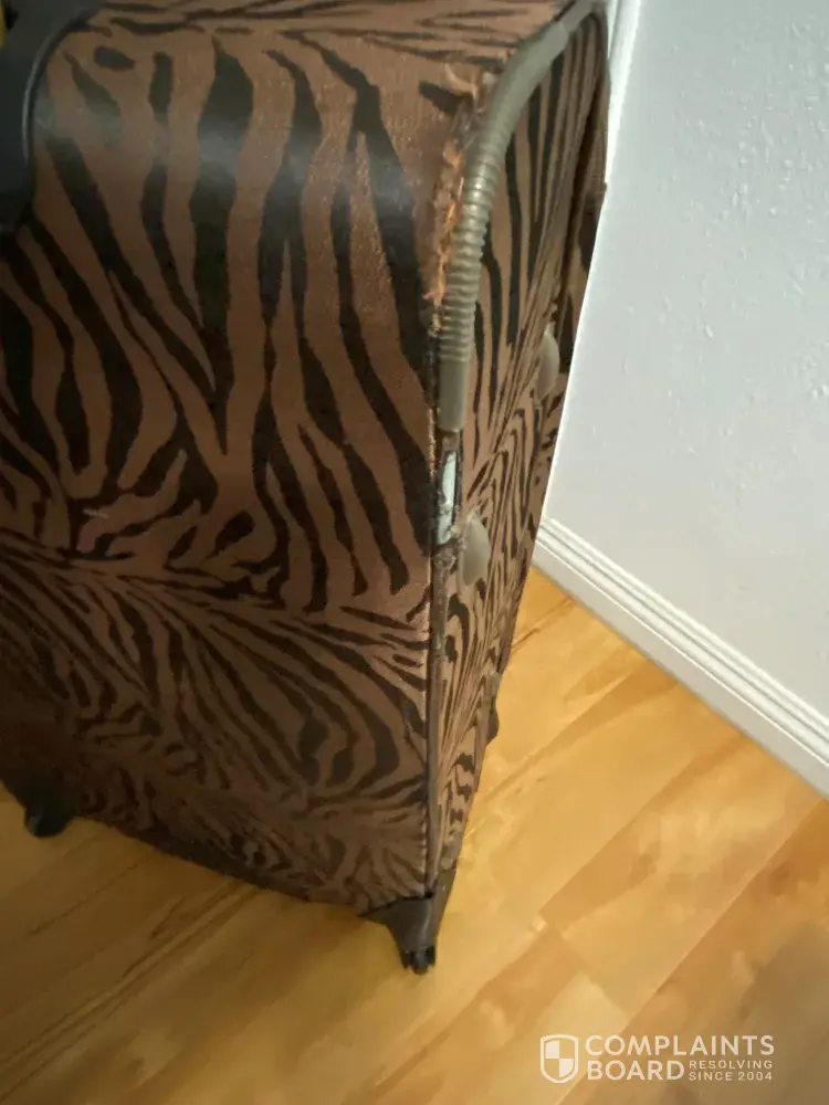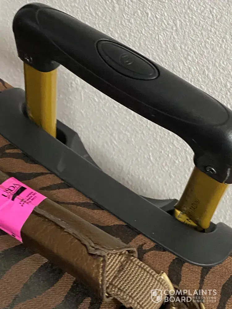 Please see attached photos. You can also see that luggage is damaged and torn on the side and not just the bent handle. What can you to do to fix this problem.