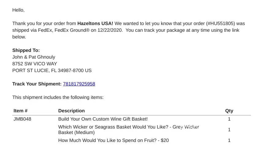 Hazeltons stating my order was shipped via FedEx.