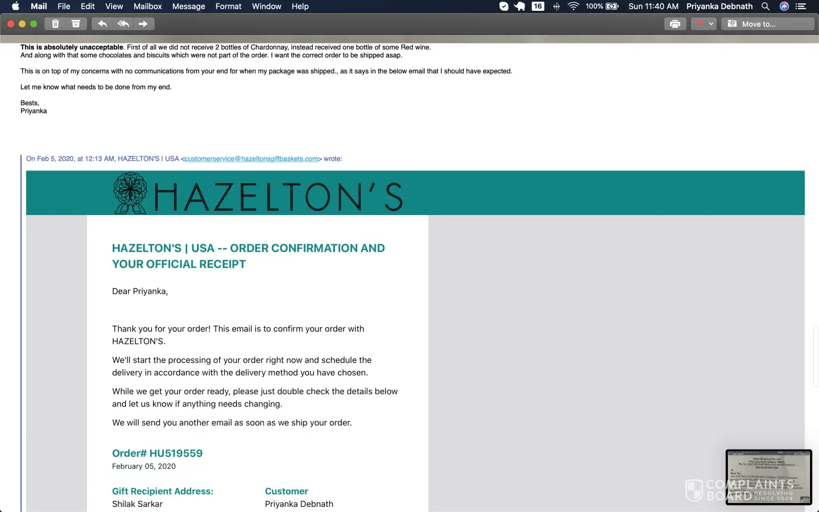 Just went through the same experience. I can see why they aren't on YELP, and why they don't even have a facebook page. They are literally hiding from bad reviews! I'm going to find everywhere I can to give them a bad review. Worst customer service I've ever had, and completely unexpected too. My friend was supposed to get fancy champagne, chocolate covered strawberry bouquet and a birthday balloon which I paid extra for...he got some weird champagne, almond roca, a chocolate bar, and a random cutting board. Most disappointing experience I've had with a company. I may dispute it with my bank...they rob people!