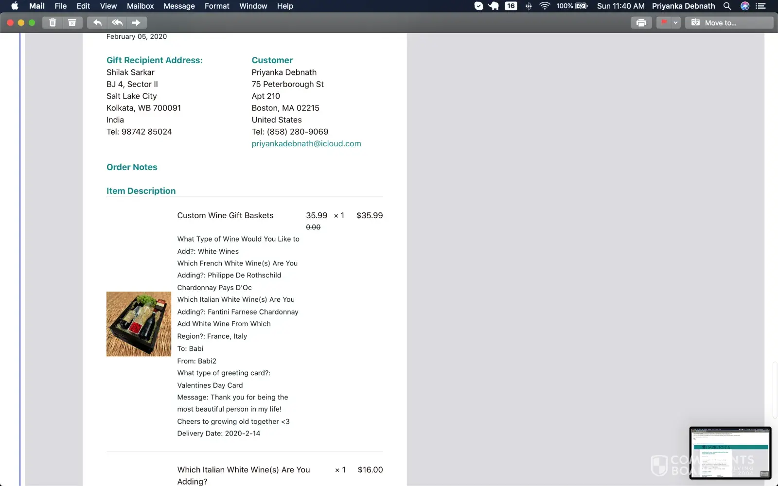 I ordered 2 wine bottles of Chardonnay for my valentine's day gift.
