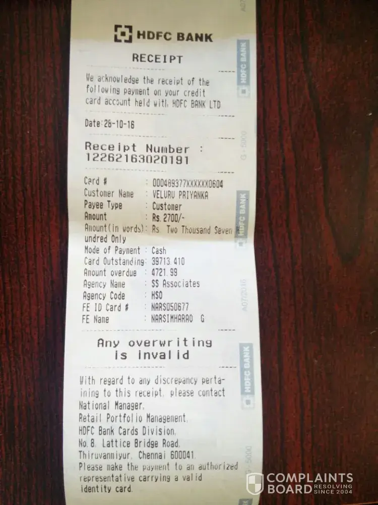 The messages are also being received from HDFC bank on my mobile no.[protected] as under( 17.01.2017):-