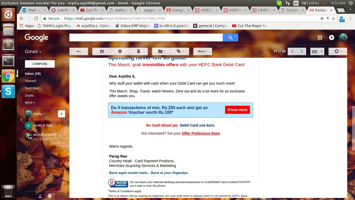 I had received a mail regarding amazon voucher from HDFC stating if 4 transactions wit min INR 250 is done before march 31st 100 INR voucher will be given. But i have not got anything.