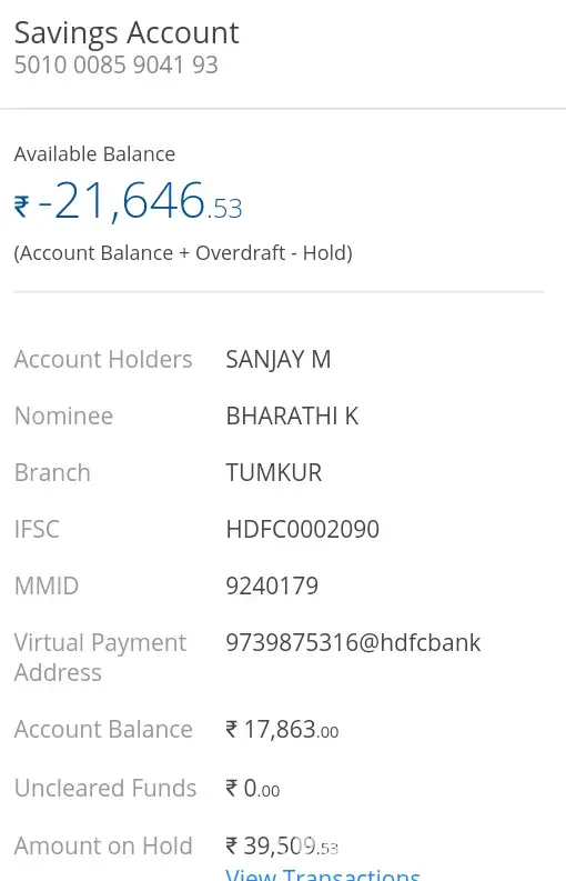 This is rohit kumar singh, I have a salary account with hdfc bank (girinagar branch, bangalore, karnataka) ifsc : hdfc0001750.