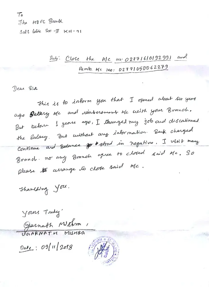HDFC Bank closing my salary a/c [protected] and a/c [protected]