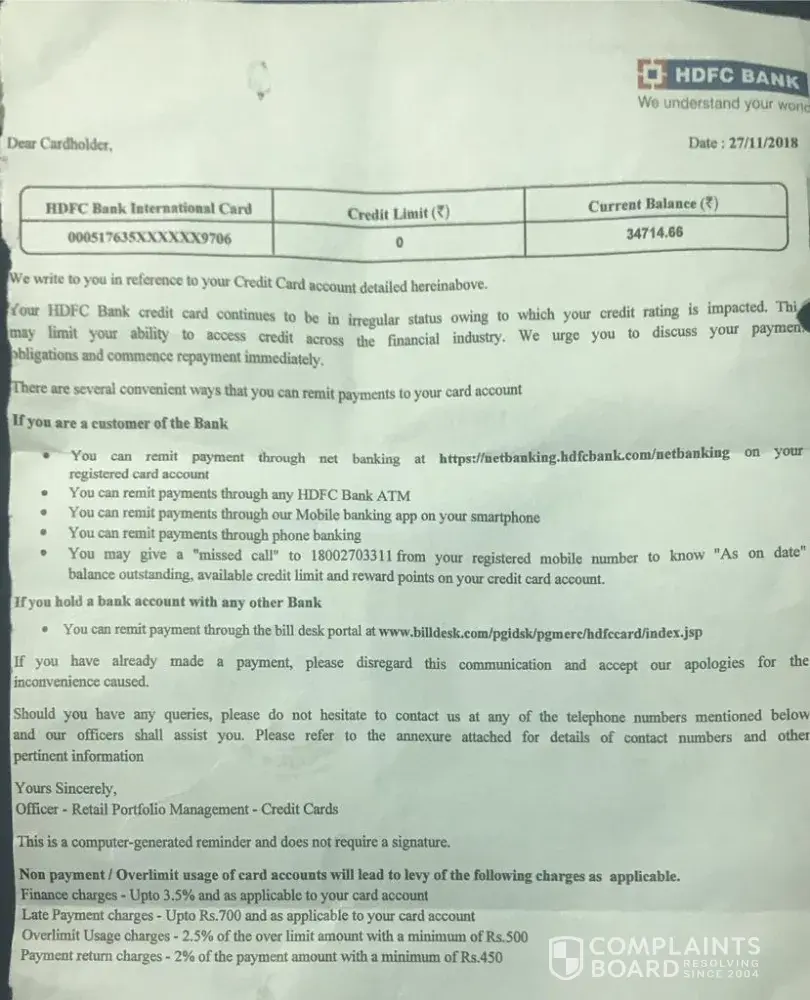 HDFC Bank Complaints Page 8 of 35