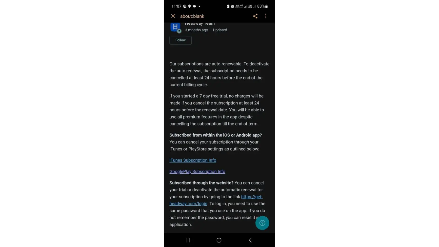 I signed up Dec 20 for trail and cancelled the same day as I find the app is not for me. But didn't expect they charged me on Dec 29 and customer service not able to see my information and keep asking me to go to Google refund department. They just not interested if their system has problem. I had been back and forth for 3 months now. The company is like a scam. Take the money and leave you hanging. I give them so many chances to do the right thing but don't seems like they care. I am going to dispute and file a complaint to Headway.