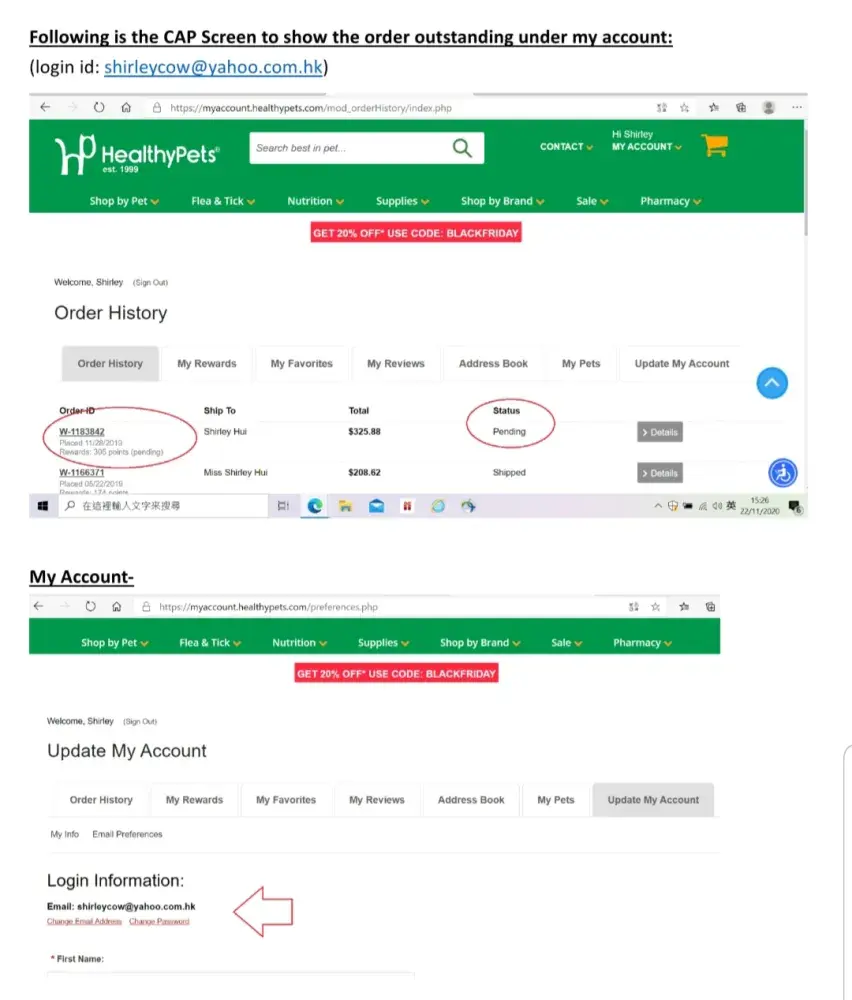 I expedite the back-order issues and asked for refund many times since May 2020, I was told that my order record is no more existed in healthypets.com and thus their accounting is hardly arranged the refund.