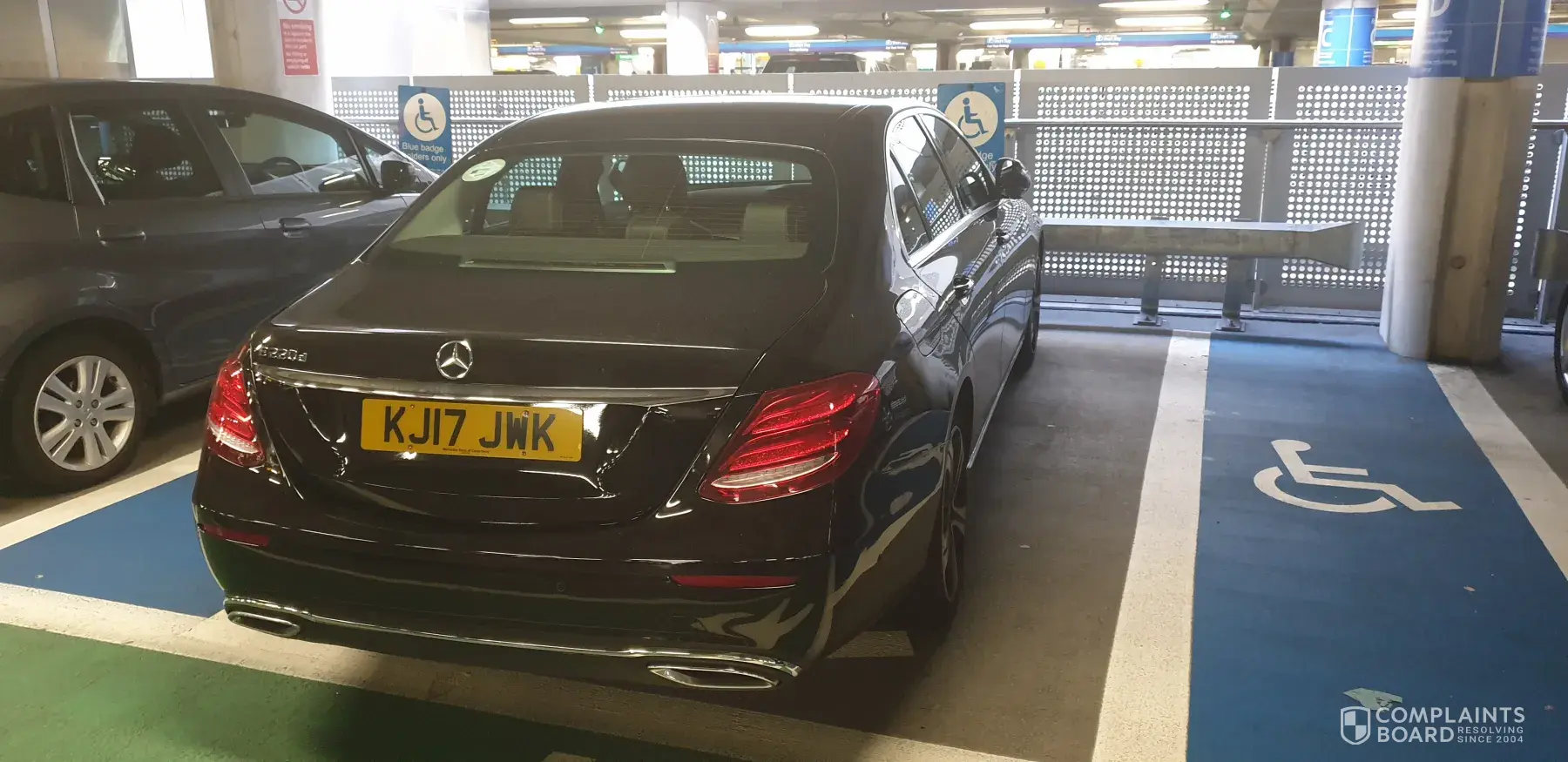 I have a blue badge and wanted to park in the blue badge spaces at T2 level one. All the spaces were occupied. Five of the spaces were occupied by either Black Mercedes, Black BMWs or Black Vito passenger buses. None were displaying Blue Badges and when I confronted two of the drivers, one said, "I don't care" and another said, "well I might be picking someone up who is disabled.