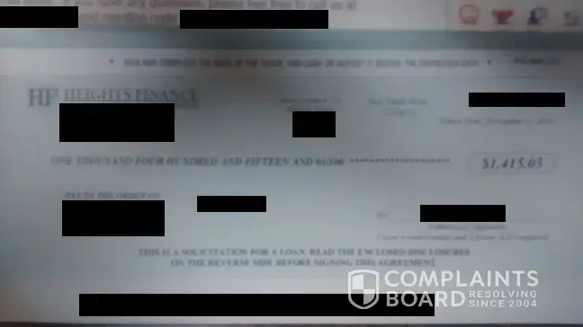 Do not understand how people who accept money from these companies don't read the contract and make sure that they can make every payment on time no matter what. I received two checks within a few months I am going to cash one. I googled every thing I could on this company. Read the entire contract, if you default they can legally do all kinds of [censored] because you agreed with your signature. Sadly they prey on desperate people who they must hope do default. I have a steady government income so I know it comes every month. This is my only option at this time so I hope I informed myself 100% of their policies. GOOD LUCK TO USE ALL