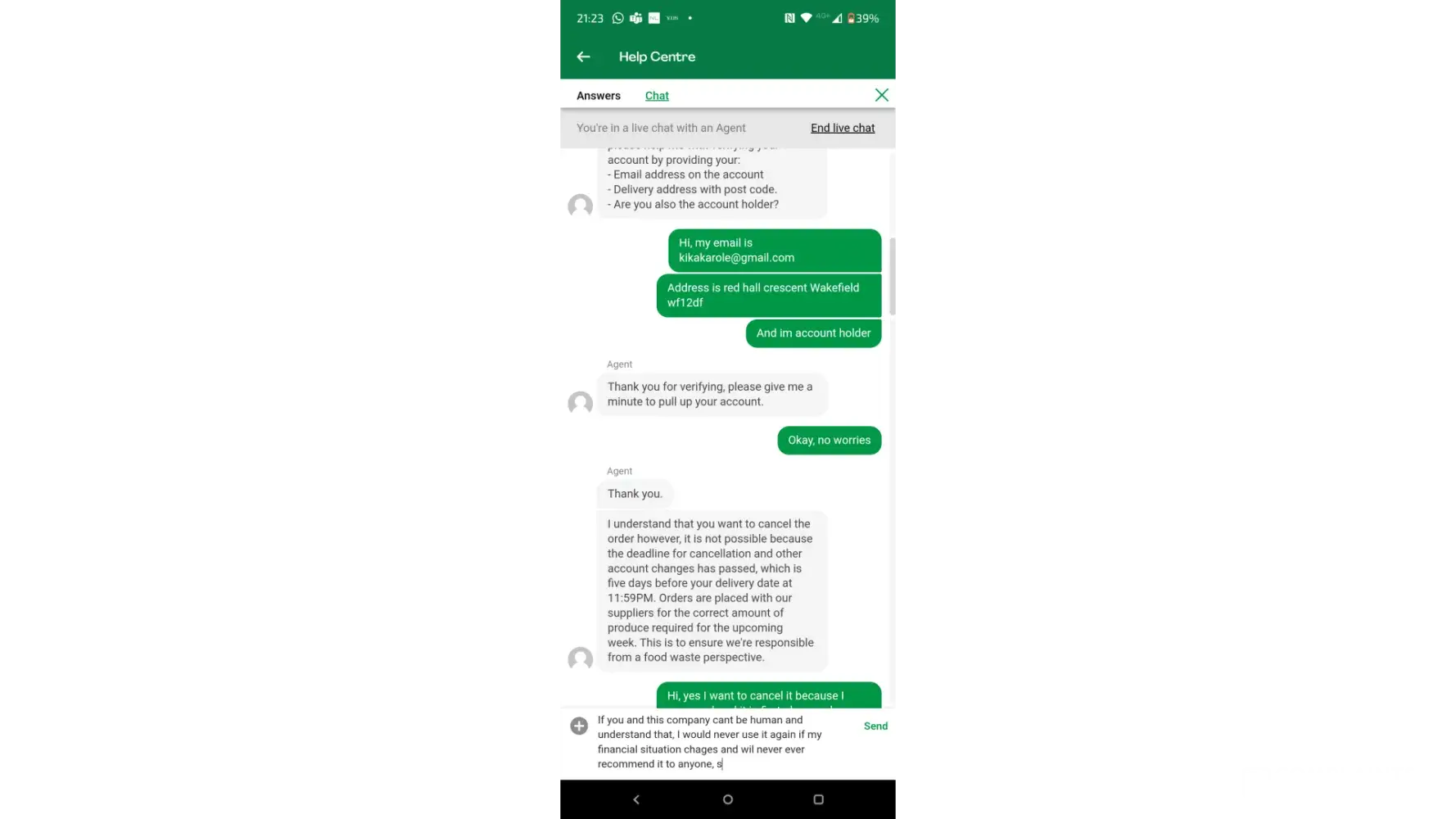 Desired outcome: If this is not resolved we will have no alternative but to call the police and register a complaint against Hello Fresh to them