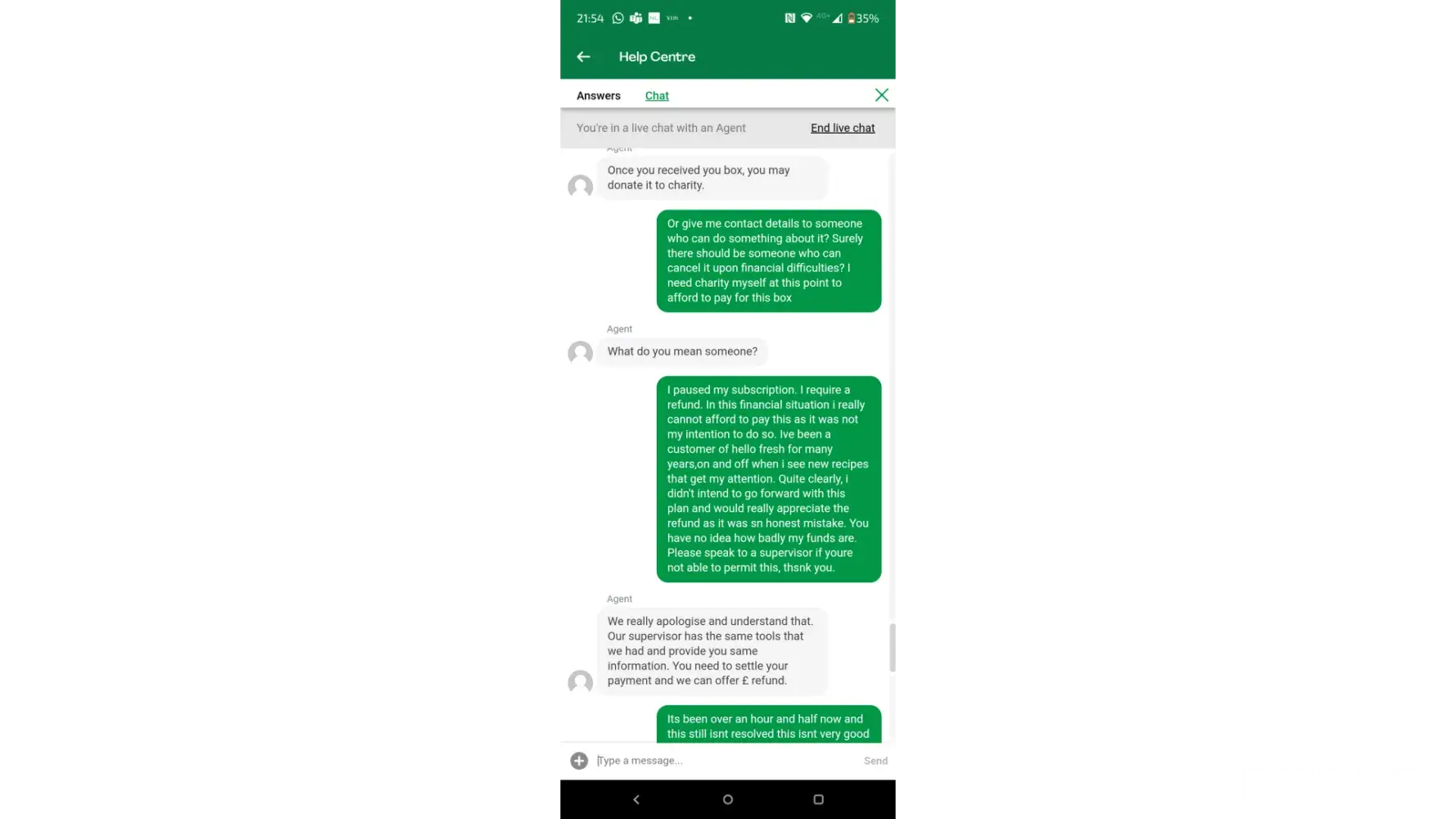 I’d like to stop any future orders and receive a full refund please as “hello fresh” isn’t fresh at all!