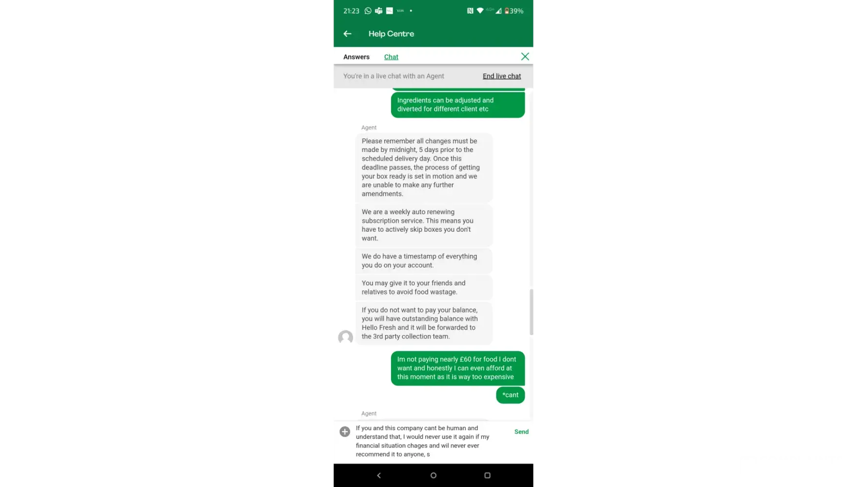 HelloFresh Not allowed to cancel if havent ordered and cant afford to pay