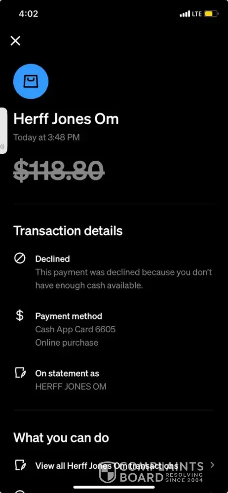 "Hello, I tried to check out but got a payment error, and my Cash App card shows $118.80 pending even though I did not complete the order. Can you please check and make sure I am not charged?"