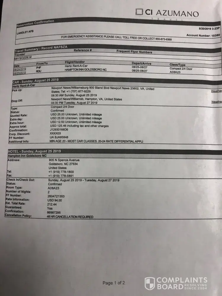Read full complainthertz / hotwire