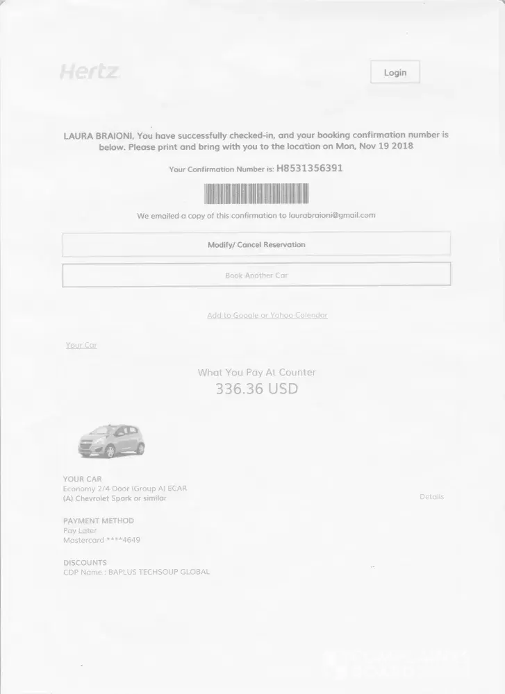 On Sunday evening, , about 9:30 PM November 4th, 2018, my employee, Robert Johnson went to pick up the Hertz car that was ordered at the Midway International Airport, Chicago.