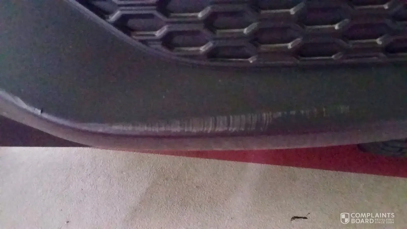 The "damage" was not decernable nor remembered by us, and several photos reveal nothing or a very slight dimple in the metal.