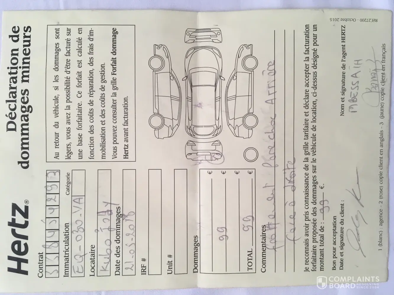 I was told I would get a receipt by email but it has yet to come. I went to Orly Airport Hertz to clear this up but was told to call customer service. I called their customer service number number, was sent to two service departments but both said I was at wrong dept. One operator hung up on me. The entire Hertz experience was terrible and it's still not over.