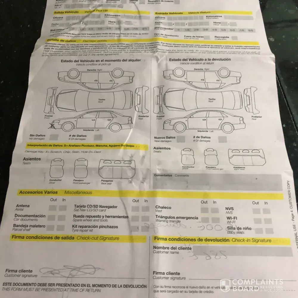 We picked up the car in the rain, probably a mistake, as nothing was noted then.