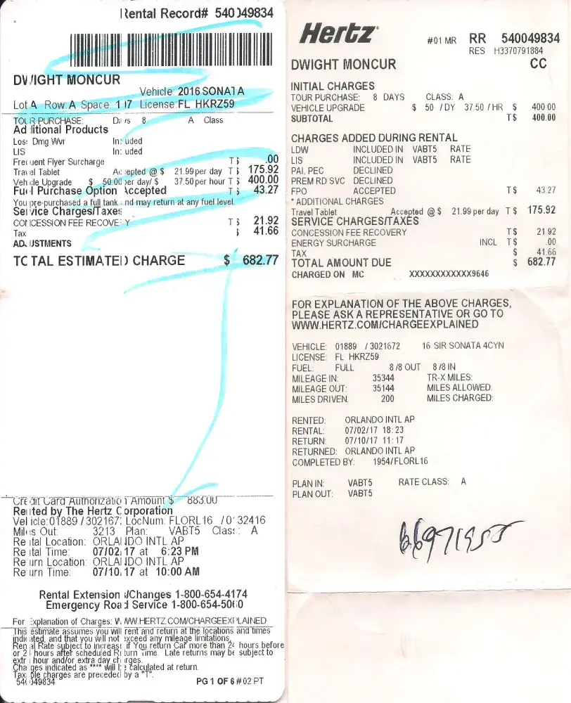 Hertz car rental charges.