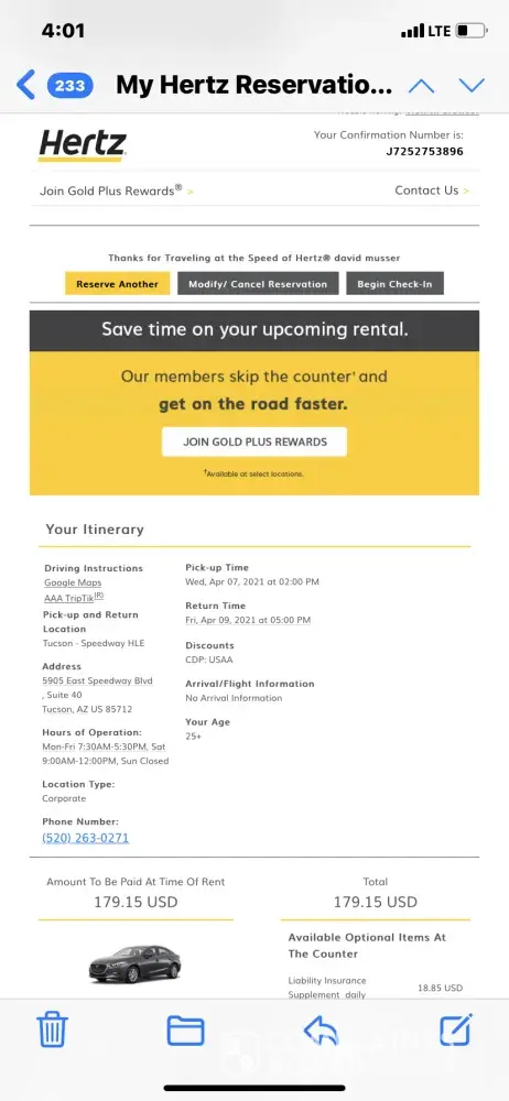 I tried calling Hertz again but was on hold for 40 minutes again.