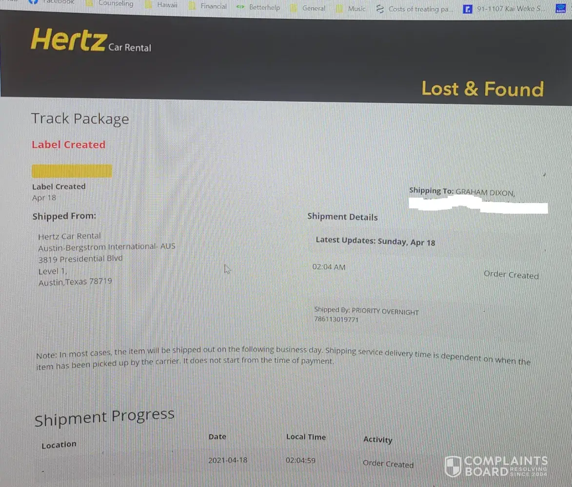 Left disabled placard in car. Found by Hertz and we paid for shipping back on April 18th. It has not been sent. Numerous calls have received run around. Tweet with Hertz - said it would be returned. Nothing. is Hertz at Austin-Bergstrom airport using my placard for their own parking etc? Don't Hertz understand that disabled parking placards are essential for those who own them?